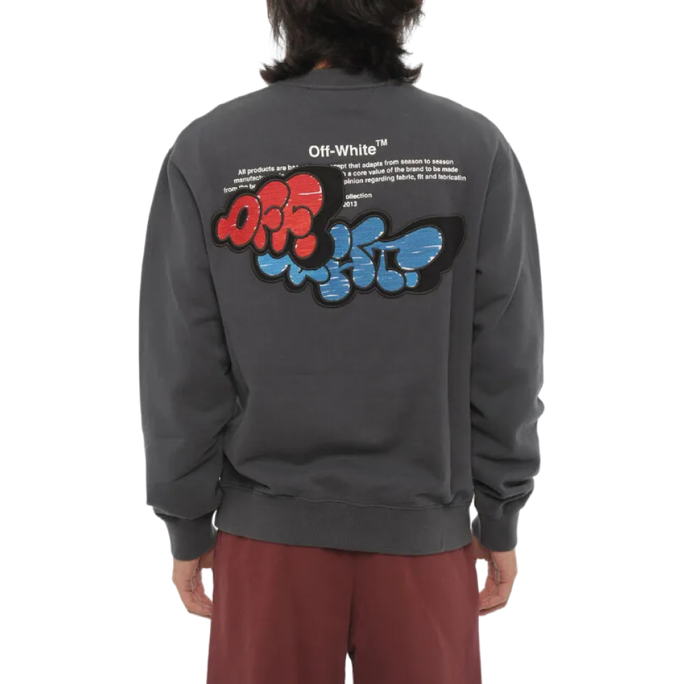 OFF-WHITE Graffiti Crewneck — стильний світшот з графіті-принтом, що поєднує культовий дизайн Off-White із сучасною стрітстайл-естетикою та комфортом для щоденного носіння.