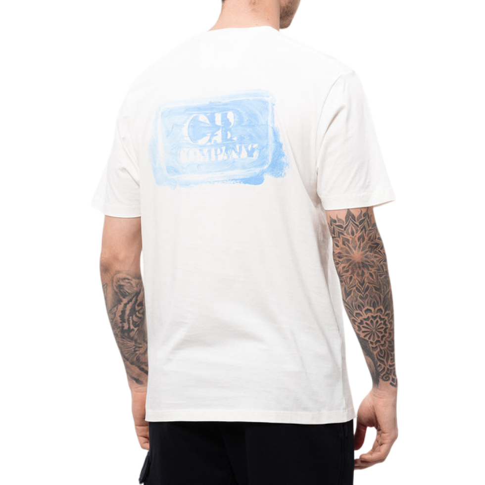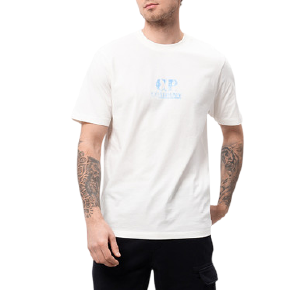 C.P. Company 301 Jersey Graphic Logo White Men's T-shirt — мінімалістична футболка з преміального джерсі та фірмовим графічним принтом, що поєднує італійську якість і сучасний стрітстайл для щоденного гардероба.