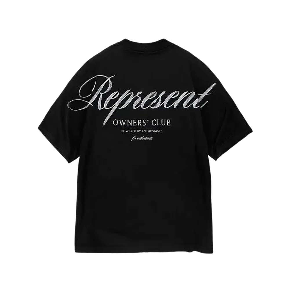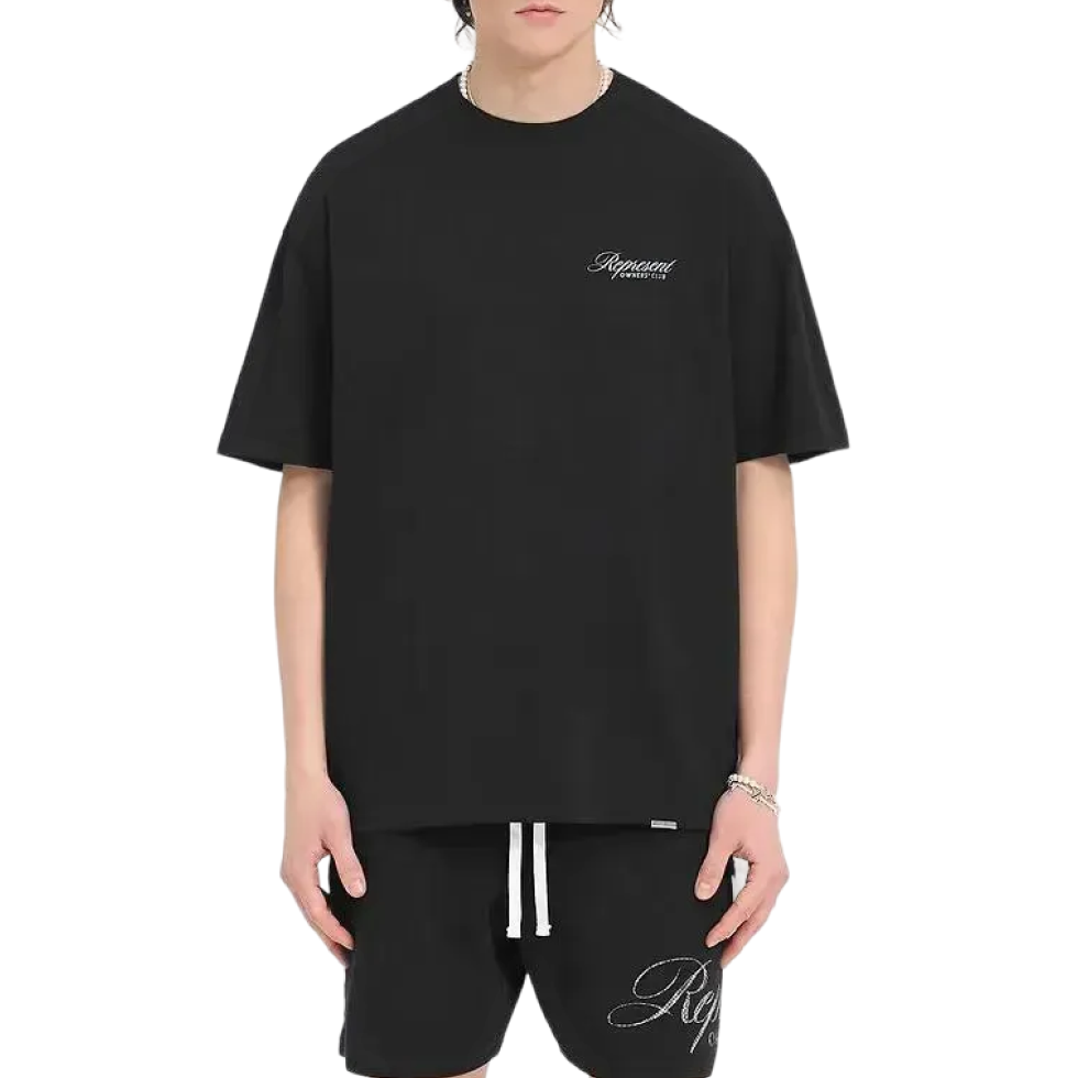 Represent Black Owners Club Script T‑Shirt — стильна чорна футболка від Represent з графікою Owners Club Script, що поєднує сучасний streetwear‑дизайн, мінімалістичний стиль і комфорт для повсякденних образів.