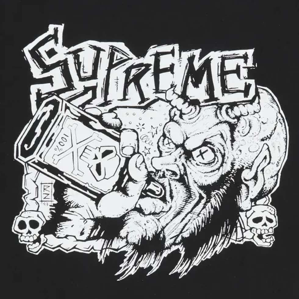 Supreme Blowout Tee Black — чорна футболка з яскравим принтом, що поєднує комфорт, стиль і впізнавану естетику бренду Supreme.