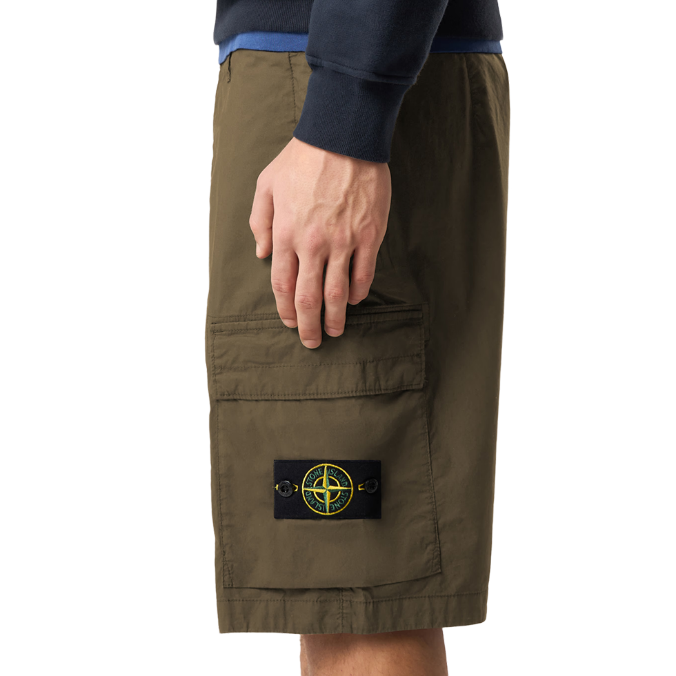 Stone Island Cargo Bermuda Shorts Green — стильні шорти в зеленому кольорі з функціональними кишенями, що поєднують комфорт, практичність і впізнавану естетику бренду Stone Island.