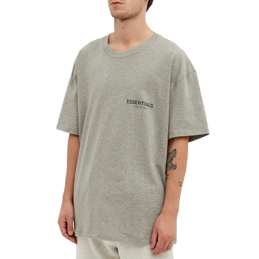 Fear of God ESSENTIALS Dark Heather Oatmeal Tee — базова футболка з лінійки ESSENTIALS від Fear of God, виконана в універсальному темно-сірому меланжевому відтінку dark heather oatmeal, що поєднує мінімалістичний стиль, якісні матеріали та комфорт для щоденного носіння.