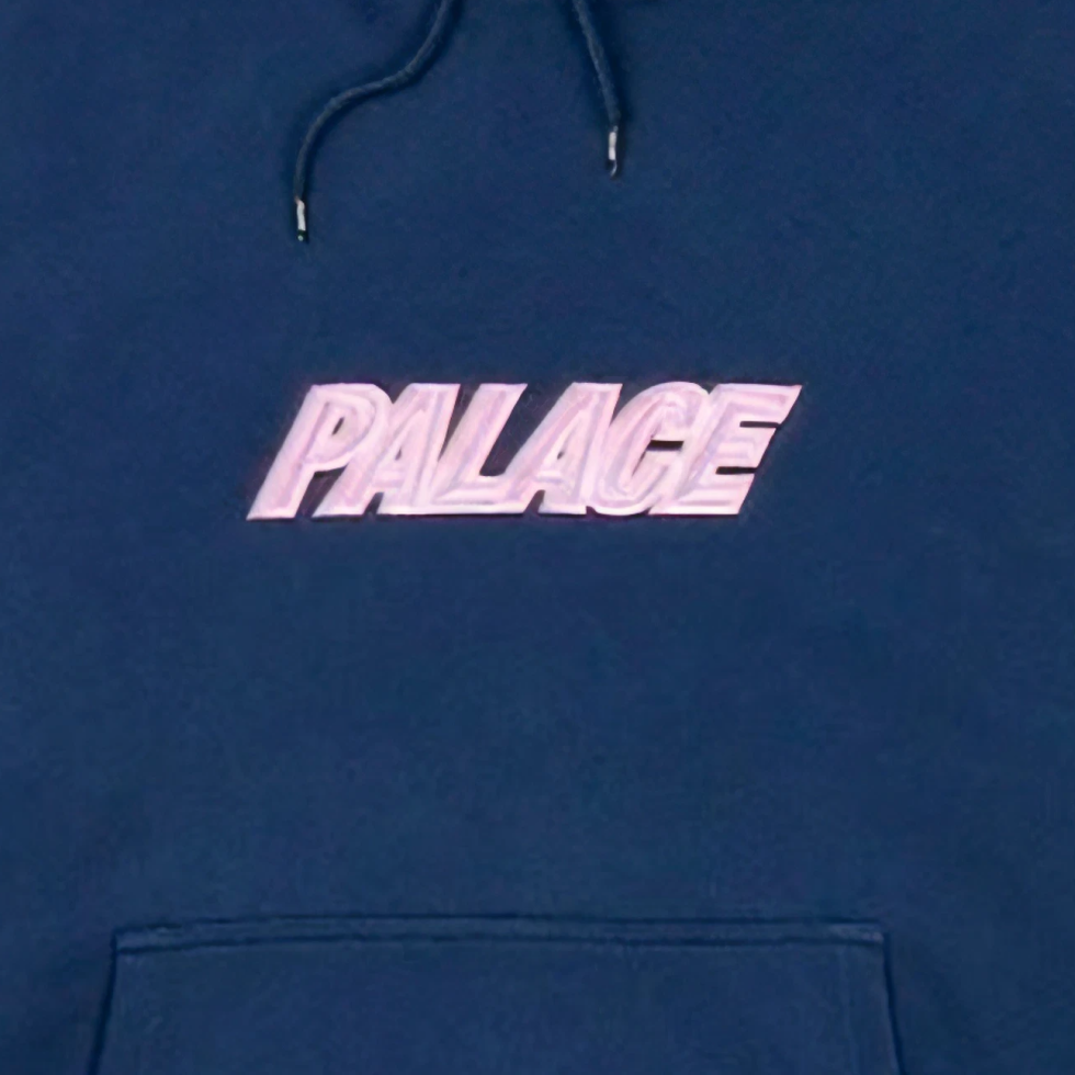Palace Font Hood Navy — класичне худі в темно-синьому кольорі, що поєднує комфорт, мінімалістичний дизайн і впізнавану streetwear-естетику бренду Palace.