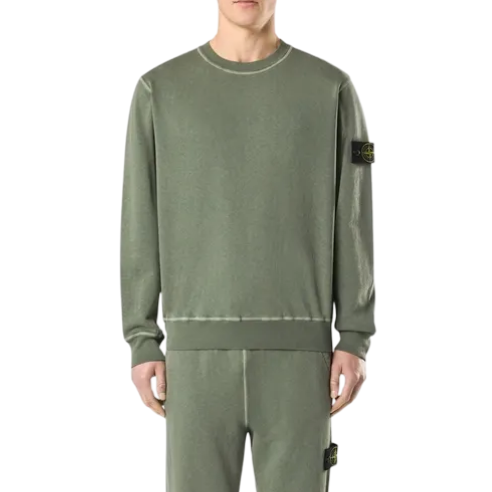 Stone Island Moss Green Cotton Sweatshirt — стильний світшот у глибокому мохово-зеленому відтінку, який поєднує впізнавану естетику бренду та комфорт на кожен день.