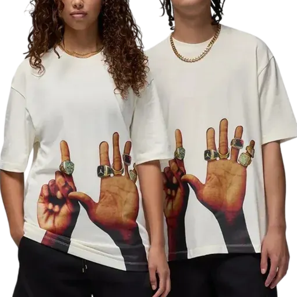 Jordan Flight MVP Rings T-Shirt White — стильна футболка, що віддає шану легендарній спадщині Майкла Джордана. Поєднує класичний дизайн, комфорт і спортивну впевненість бренду Jordan.