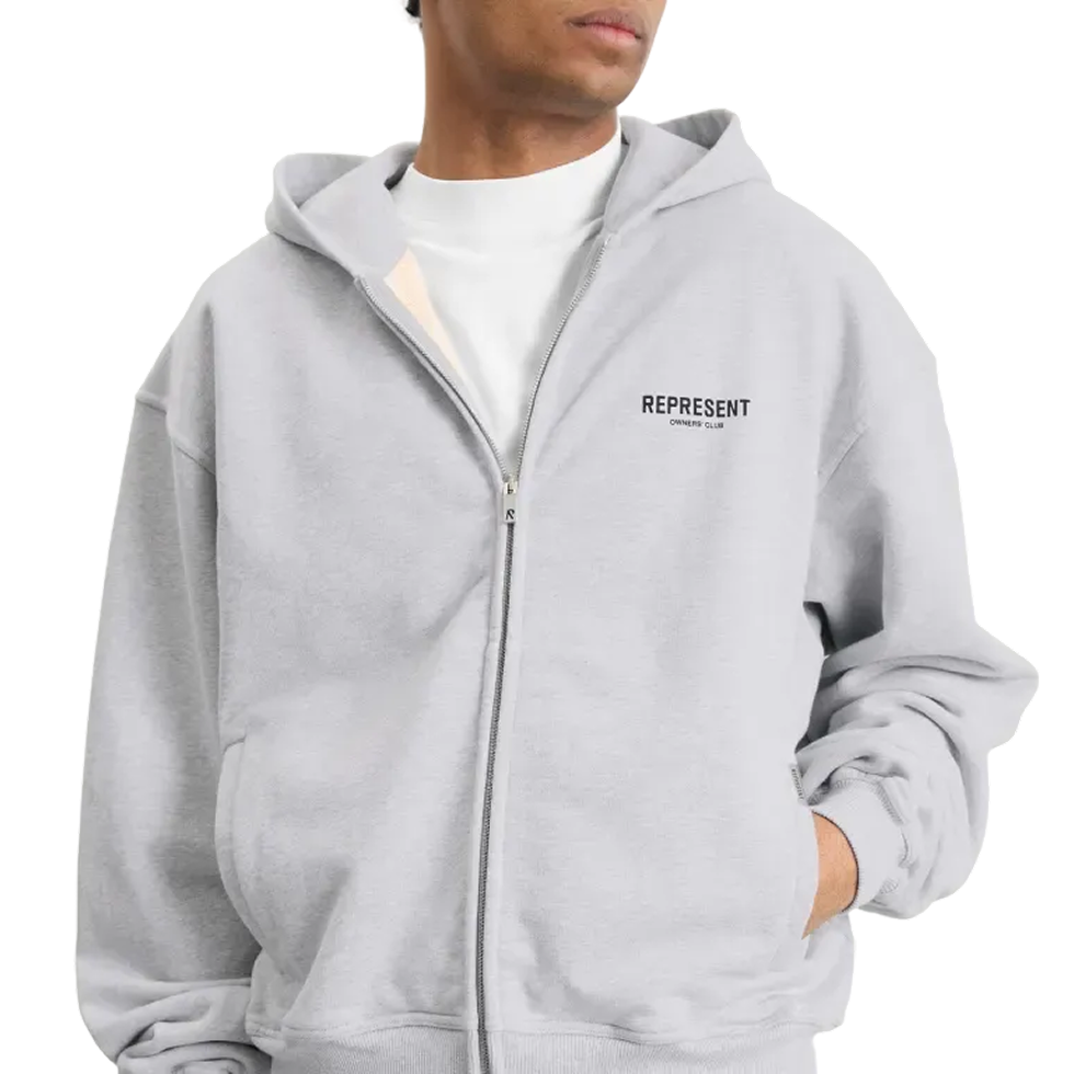 Represent Owners Club Zip Hoodie — Ash Grey — стильне худі‑застібка від Represent у світло‑сірому відтінку Ash Grey, з логотипом Owners Club, що поєднує сучасний streetwear‑дизайн, комфорт та універсальність для повсякденних образів.