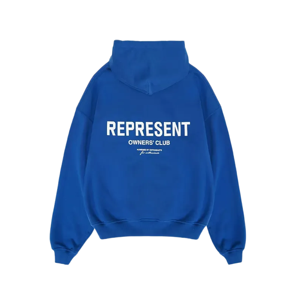 Represent Owners Club Zip Hoodie — Cobalt Blue — стильне худі‑застібка від Represent у насиченому cobalt blue кольорі з логотипом Owners Club, що поєднує сучасний streetwear‑вигляд із функціональністю та комфортом.