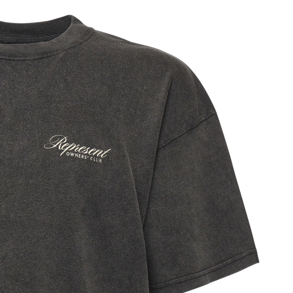 Represent Vintage Grey Owners Club Script T‑Shirt — стильна футболка від Represent у винтажному сірому відтінку з принтом Owners Club Script, що поєднує класичний дизайн, легкий «вінтажний» ефект та сучасну streetwear‑естетику.