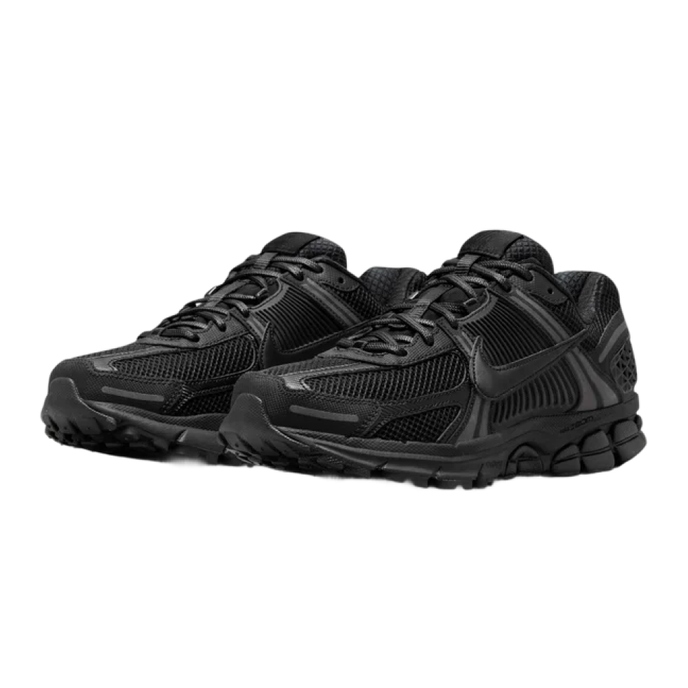 Nike Zoom Vomero 5 SP Black — сучасна версія культових кросівок, виконана у класичному чорному кольорі. Поєднує ретро-дизайн 2000-х із сучасними технологіями для комфорту та підтримки стопи.